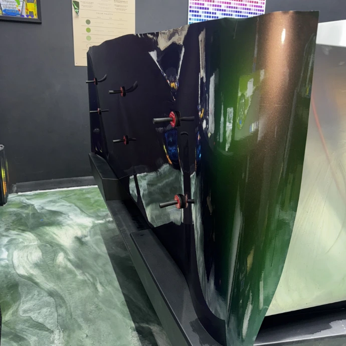 Cette pellicule offre une profondeur de couleur unique, passant par différentes teintes selon l’éclairage, tout en conservant une finition lisse et uniforme.